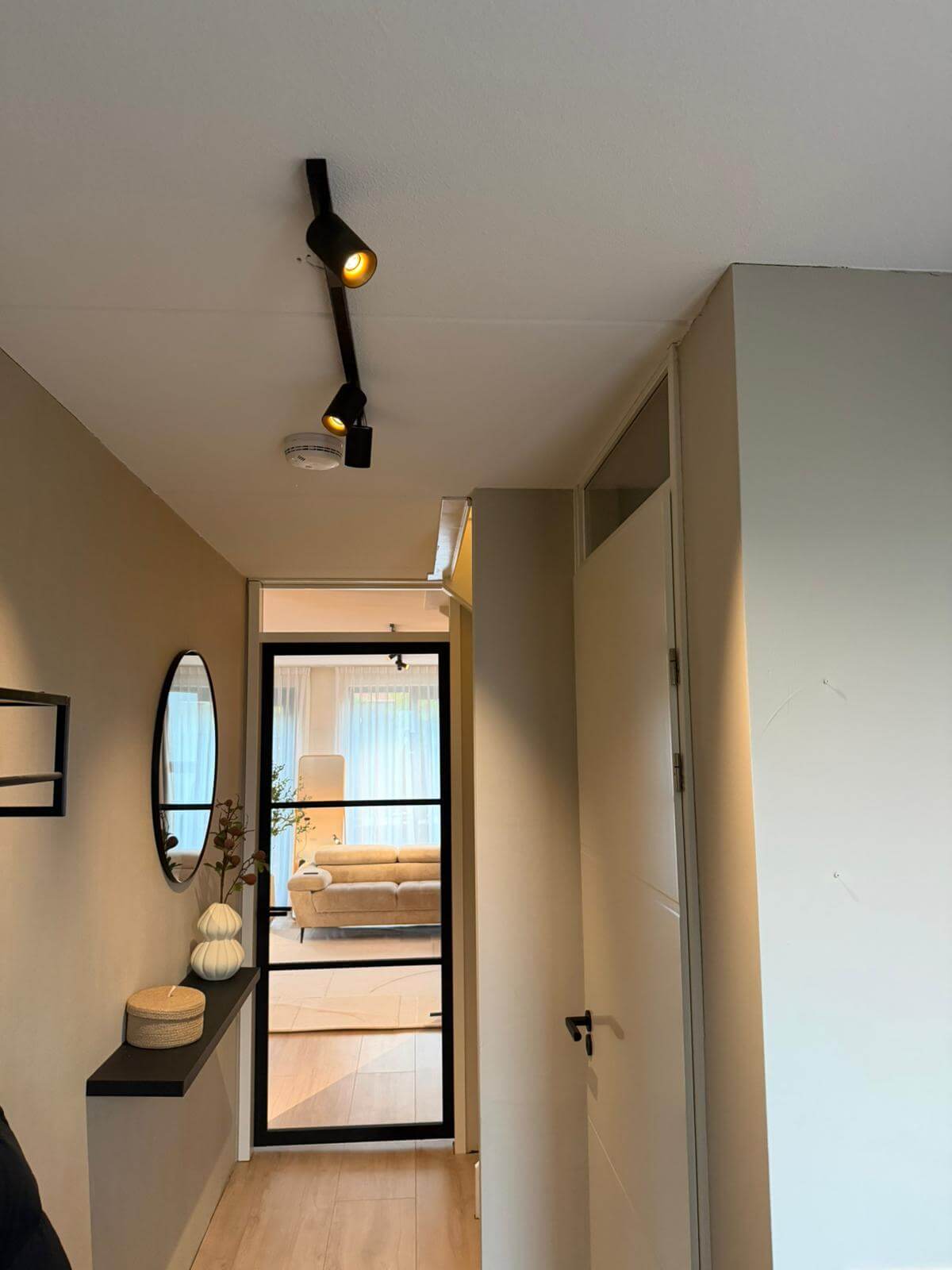 In this refined private residence, Dea Juventas-Q1 XS and Dea Juno-Q1 XS and S deliver architectural precision and sculptural elegance. Together, these 48V mini spotlights provide a seamless lighting solution across the living room, kitchen, and hallway, combining visual comfort with design intent.